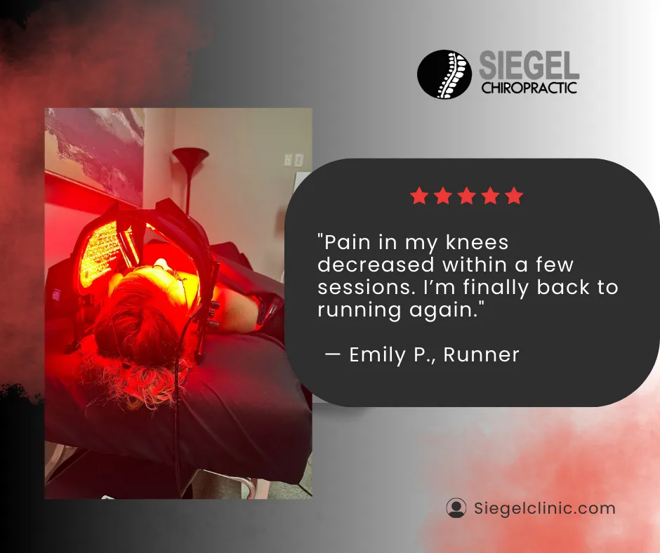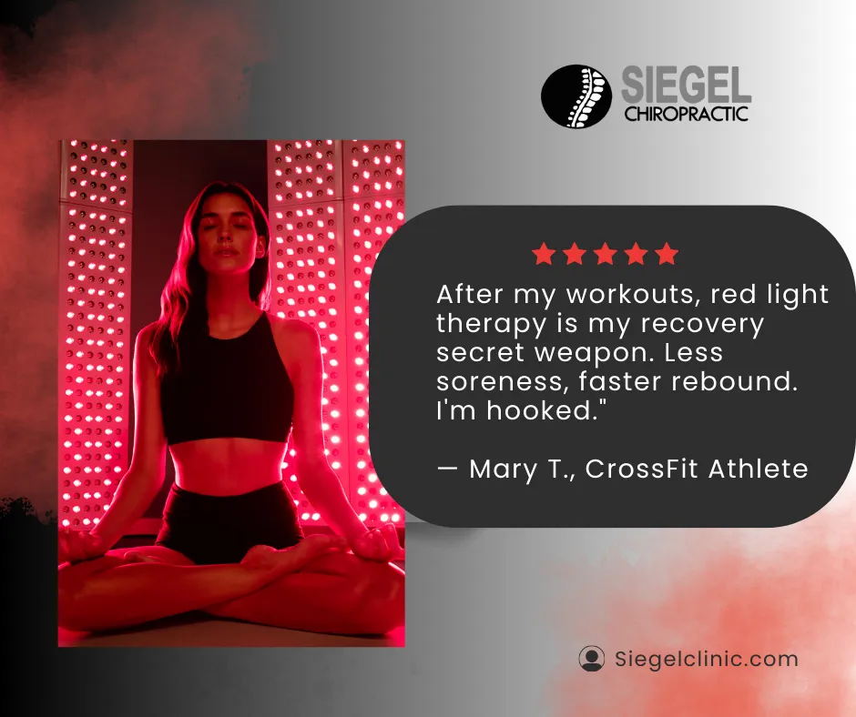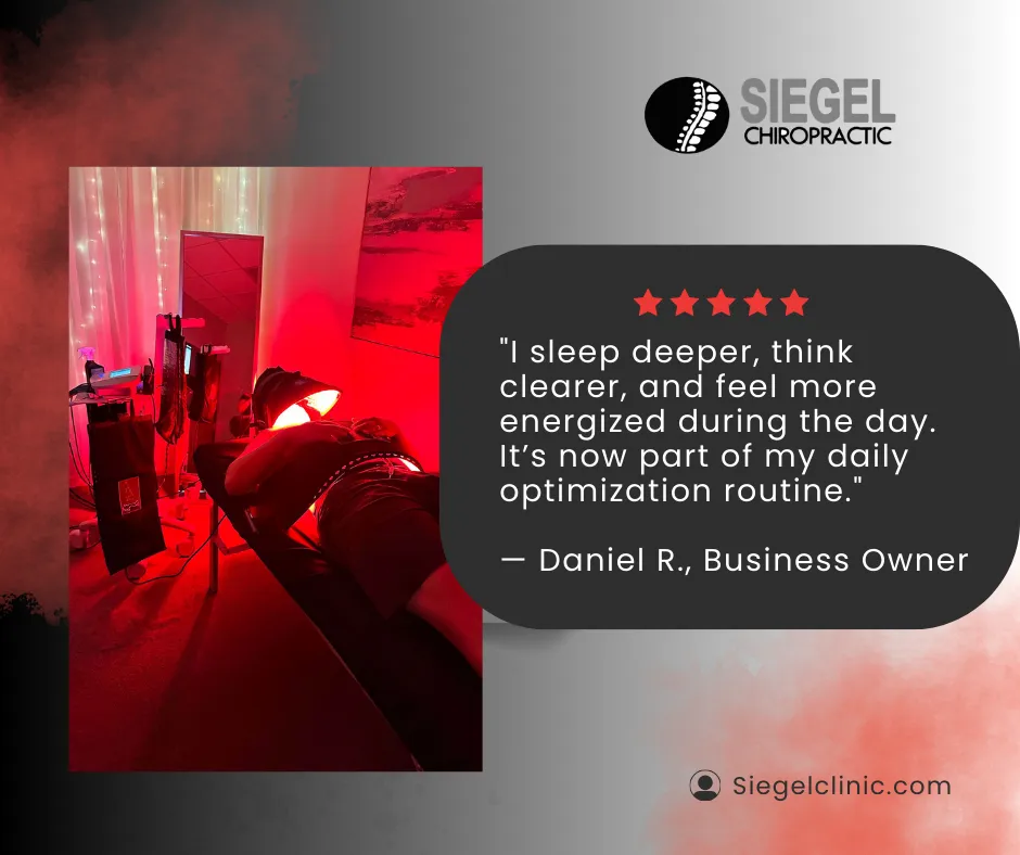At Siegel Chiropractic, we combine clinical expertise with modern biohacking tools like Red Light Therapy (RLT) to optimize performance, accelerate fat loss, and support overall wellness. RLT boosts cellular energy (ATP), improves circulation, reduces inflammation, and enhances metabolic function—making it a powerful addition to recovery, weight management, and longevity routines.